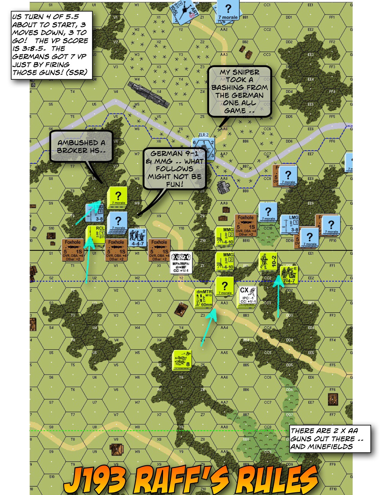 PS If you are playing this as well, note that Foxholes (of which we had 6) actually offer a -1 Rallying Bonus when on HDP’s (Sm2.4). Something we missed.